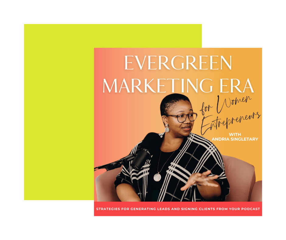 If you’re new here, welcome! I’m Andria Singletary, podcast strategist and producer for established women in business. I support my clients with turning their podcast into an evergreen marketing system that drives leads and sales, allowing them to live their lives and still grow their businesses even when their capacity shifts.